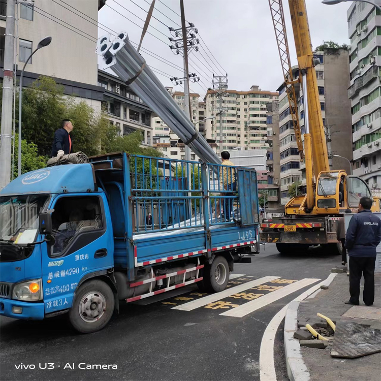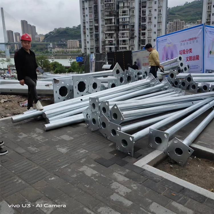 造型及尺寸符合用户要求,造型流畅和谐,美观大方,色泽均匀,钢管直径选用合理。监控立杆为圆椎八角形结构,八角锥形杆整体无变形扭曲。杆体圆度标准1.0mm≤。杆体表面光滑一致,无横向焊缝。刀片划痕测试(25×25mm方格)喷塑层粘贴力强不轻易剥落。密封立杆并包顶端以防水气进入,防水内漏措施可靠。